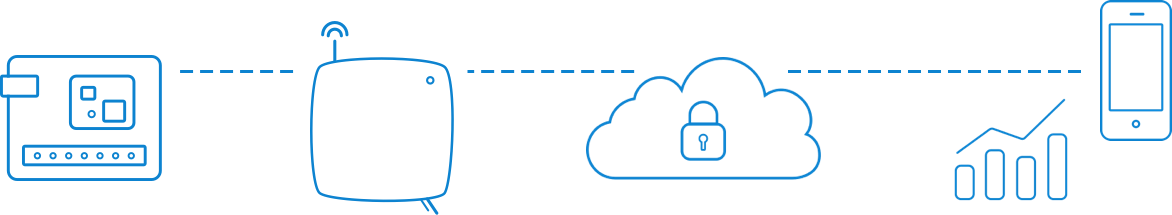 - Das Gateway ist ans Internet angeschlossen und leitet die Kommunikation mit dem Endgerät weiter in die Cloud